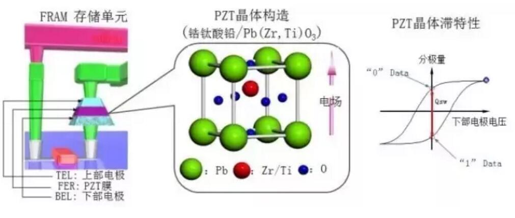 FRAM是运用铁电材料(PZT等)的铁电性和铁电效应来进行非易失性数据存储又可以像RAM一样操作。