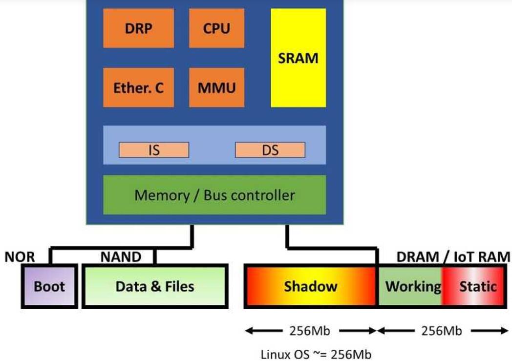 我们来看一下MCU设计中的情况,其中IoT RAM明显比外部DRAM具有优势。在下面的通用MCU图中,工作/静态存储器部分越来越需要扩展。在整个工作空间中使用DRAM会增加系统的功耗,并需要集成刷新控制器。