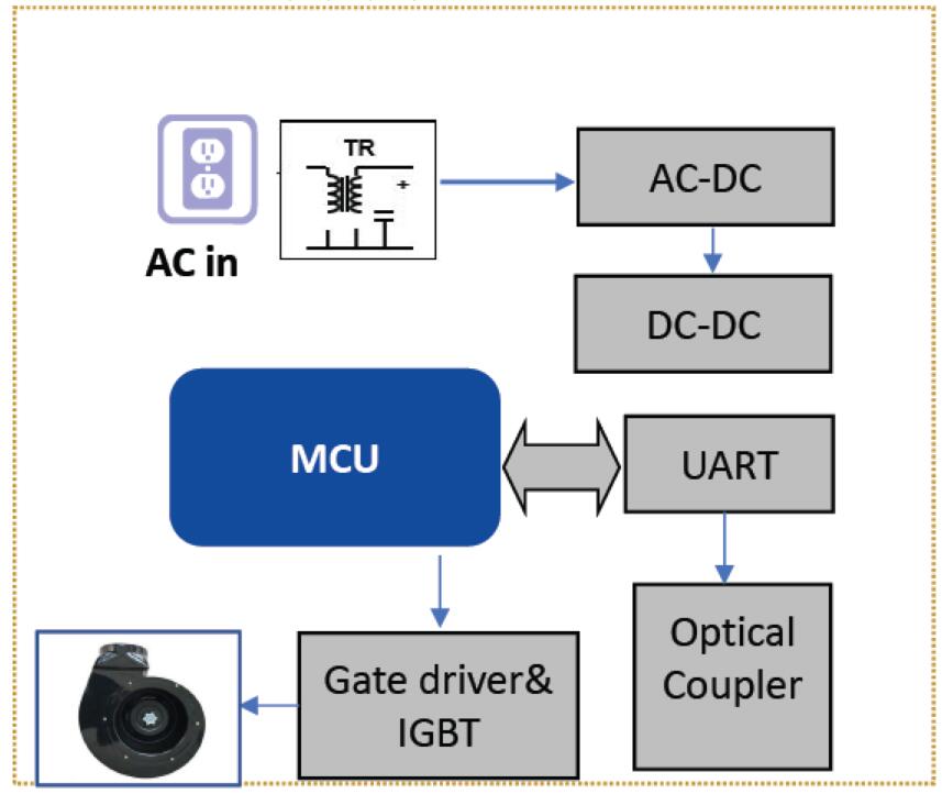 我司英尚微介绍变频油烟机方案所采用的主控芯片采用